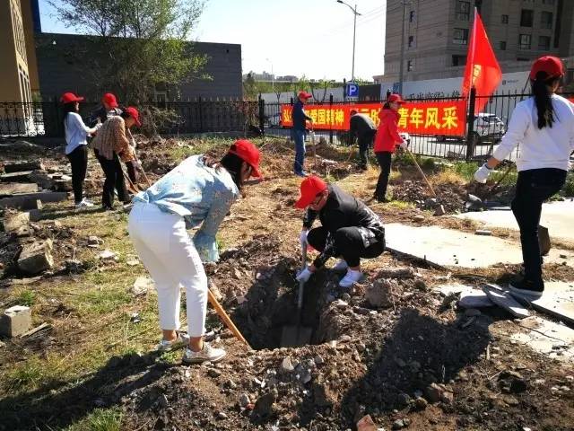 为纪念五四青年节,院团总支组织青年团员及部分管理科室干部来到院试验检测中心进行植树活动,为这里的绿化献上大家的一份关爱和努力。本次活动 原定于5月4日的植树活动因大风、沙尘暴改在5月8日下午进行。太阳驱走了雾霾,昨日的春雨滋润了干燥的土地,晴朗的天,湿润的土地正是植树的好时候。
