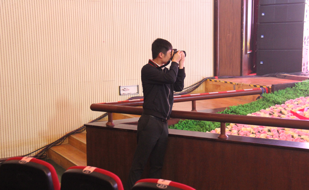 省交通宣传中心记者张士鹏在“畅想交通梦、放歌新时代”歌咏汇演现场采访