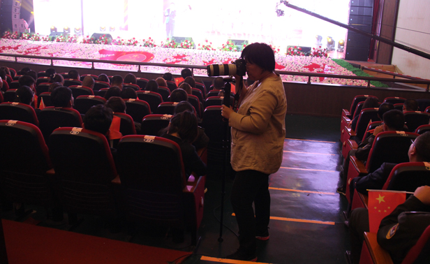 省交通宣传中心记者阚世儒在“畅想交通梦、放歌新时代”歌咏汇演现场采访