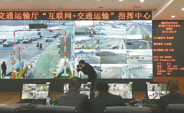 吉林省交通运输厅“互联网+交通运输”指挥中心,记者张士鹏用照片记录交通人紧张值守的场景。