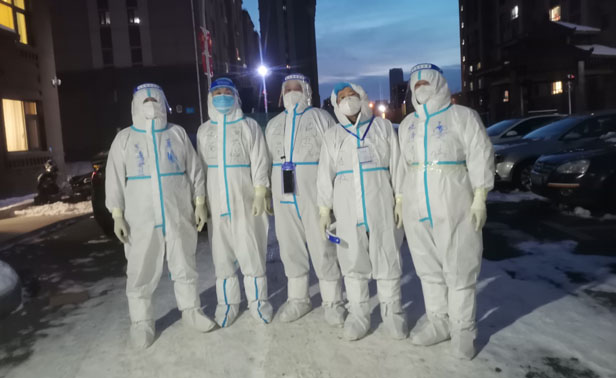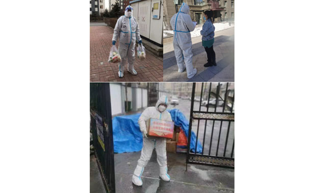 十几天来,志愿者起早贪黑——校长田野组织大家观看防疫培训视频,学习防护常识,同时也“接单跑腿”送物资。58岁的靳大勇斗志满满,一直冲锋在抗疫一线。50岁的尹丽娟,巾帼不让须眉,服务细致认真,受到社区工作人员好评。孟大伟和王鹏,总是第一时间报名参战。李林峰工作时腰间盘突出的老毛病犯了,却依然坚持,收工时已双腿水肿。王兴悦是一名年轻党员,干劲儿十足,脏活累活主动上前。刘玉友是志愿者突击队里唯一一位非党同志,也是冲锋在前,毫不逊色。刚刚退伍来单位的周闯,毫不犹豫地报名志愿者,“服从命令,指哪儿打哪儿”,军人本色未改。
