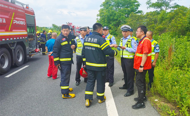 发现情况后,朱海迅速启动突发事件应急处置预案,第一时间拨打火警及高速交警报警电话,准确报告事故地点、车辆类型、火势情况、司机情况等关键信息,并在安全距离处摆放反光锥桶,设置警示区。随后,立刻将现场情况详细报告至分公司相关负责人。