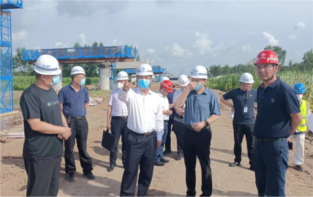 在饮马河特大桥、G102分离立交等沿线施工现场,张鹏军听取了项目建设单位关于工程进展情况的汇报,详细了解项目中存在的困难和问题,对建设项目下一步工作提出了要求。他强调,一要积极沟通协调地方政府和有关部门,加快电力管线征拆工作;抢抓受雨季影响小的桥涵构造物施工,打通施工便道,解决制约路基填筑进度的关键问题,为下一步秋季路基规模化整段施工创造条件。同时,要进一步加大施工投入,确保年度投资计划完成。二要加强防汛工作。要制定可操作性强的防汛方案和防汛预案,设备存放、人员宿舍要远离洪水影响区,确保施工人员和设备安全。要做好施工排水,避免产生水淹地给附近群众带来财产损失。三要抓好现场作业安全工作。按标准和规范做好作业区管控和现场人员管理,规范化作业,特别要注重桥梁高空作业和涉路施工作业的安全管理。同时,认真做好工地自建房和租用房的安全隐患排查和治理工作,确保安全。四要进一步加强质量监督和管理,落实质量安全保证体系,各参建方要尽职尽责,长春市交通运输综合行政执法支队要做好工程质量安全监督工作。五要进一步加强疫情防控工作,抓好疫情防控措施的落实,做好施工人员的管控。六要做好农民工工资保障工作。按要求及时足额发放,坚决杜绝拖欠农民工工资的现象发生,维护社会稳定。
