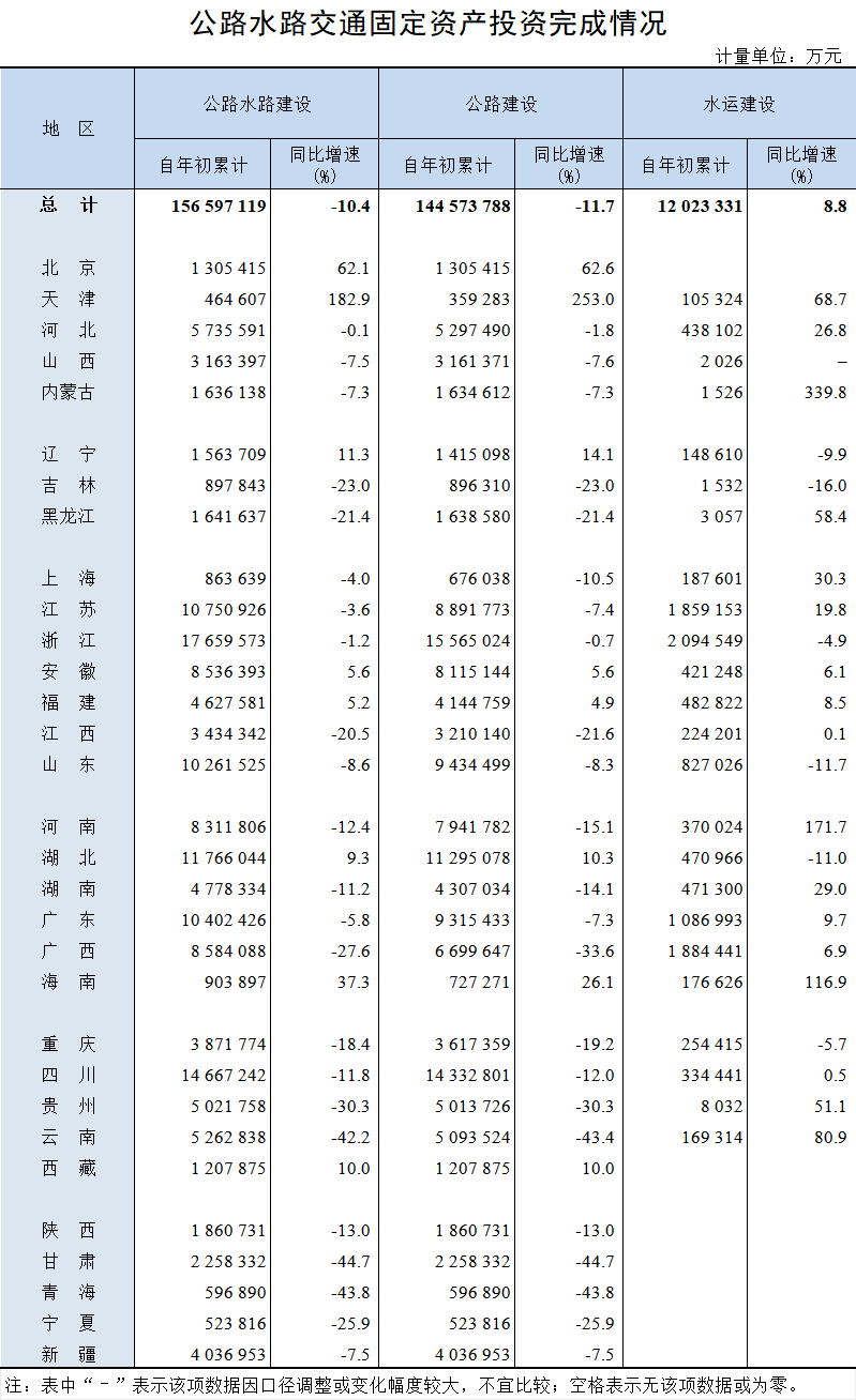 2024年1-7月公路水路交通固定资产投资完成情况