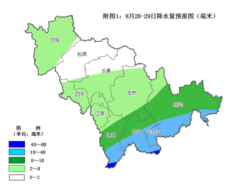 预计8月28日凌晨-29日夜间,我省南部和东部将有一次明显降水天气。降水主要集中在28日白天。其中,通化南部、白山南部、延边南部、长白山保护开发区有中到大雨,部分地方有大到暴雨。8月中旬以来我省南部和东部降水较为集中,此次过程鸭绿江、图们江、浑江等流域的中小河流洪水风险较高,鸭绿江流域还需关注境外客水的叠加影响;东部山区部分地方有发生山洪、地质灾害的气象风险。