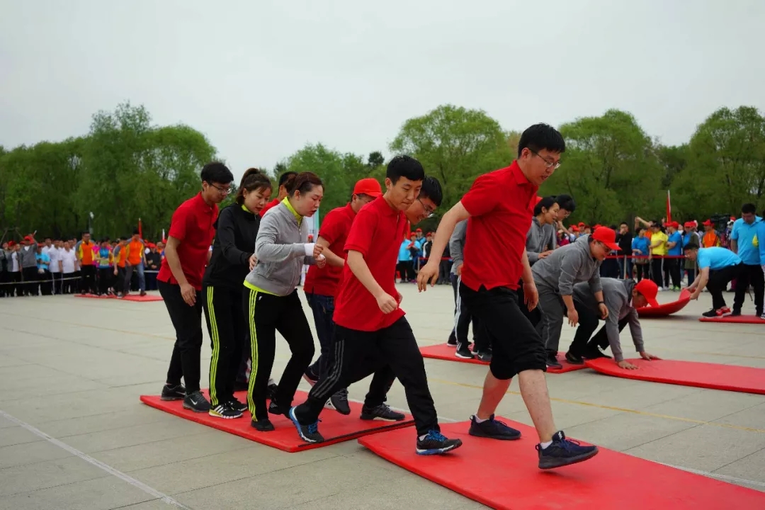 团体协作赛难度可不小,不但需要队员们在垫子上快速移动,还需要垫子两侧的队员快速传递垫子。为了取得更快的成绩,队员们不断调整垫子传递的角度,步调一致地快速前进,真的是体力和脑力的双重考验!