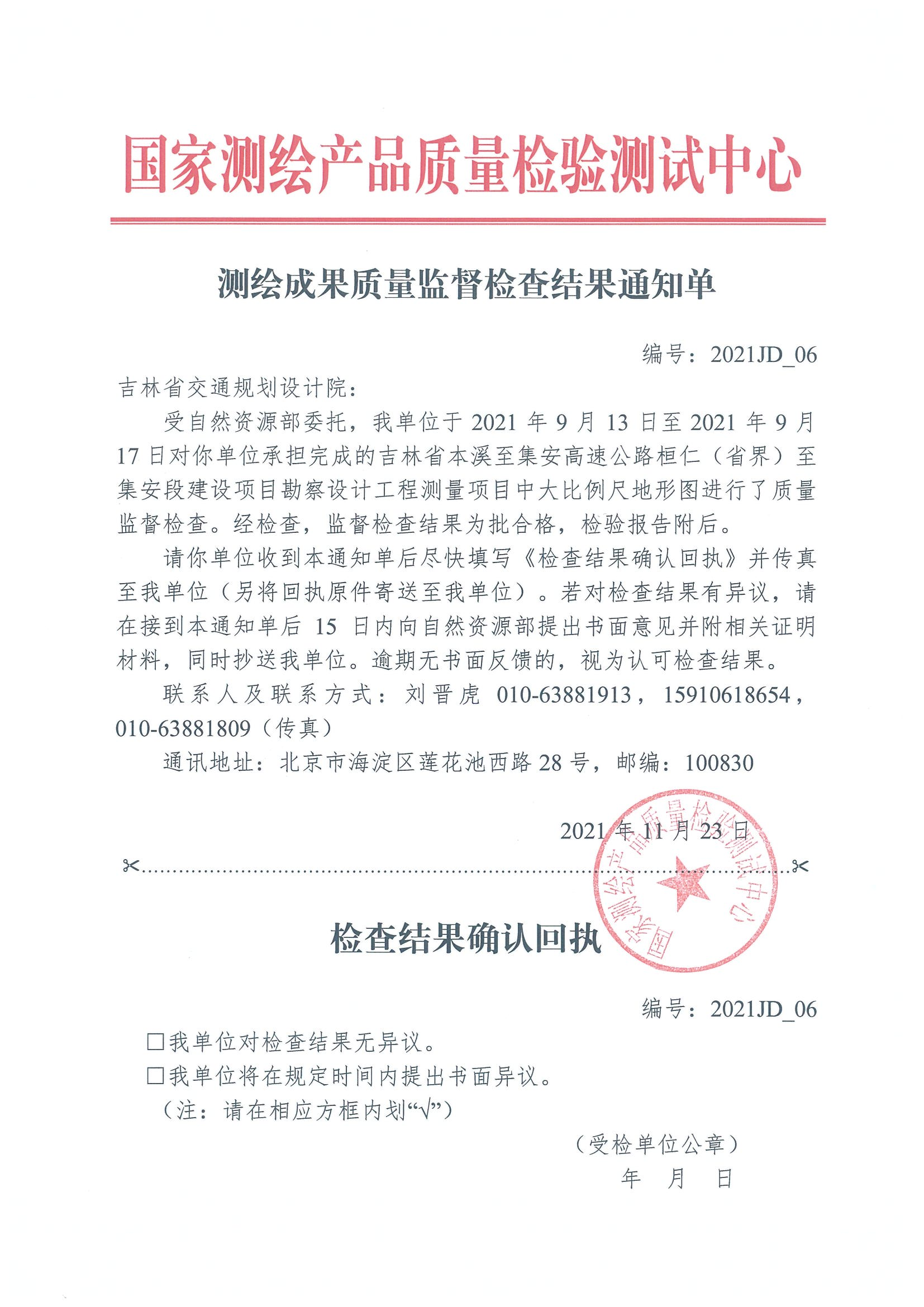 近日,我院本溪至集安高速公路桓仁(省界)至集安段建设项目勘察设计工程测量顺利通过自然资源部国家测绘产品质量检验测试中心质量监督检查。