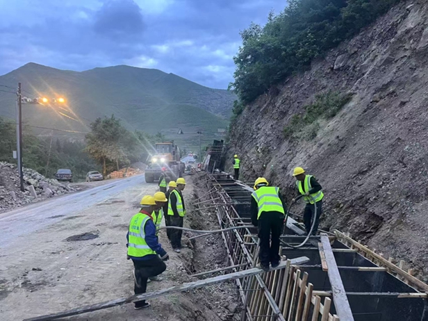 03标段后小沟棚洞顶板支架搭设及钢筋绑扎、框格梁砼浇筑、路堑墙砼浇筑等施工如火如荼。