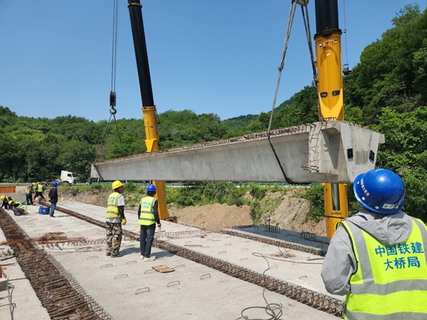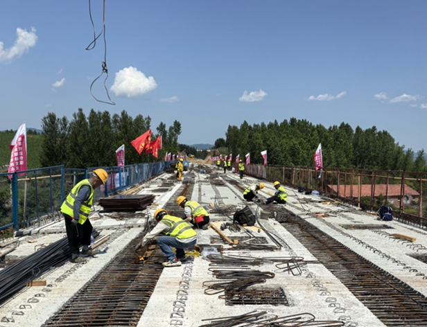 06标段水稳层摊铺、虚弓大桥架梁建设等施工全速推进。