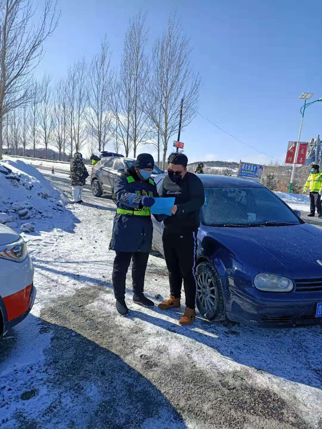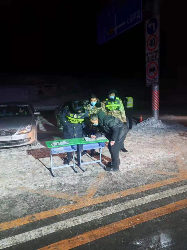 江源区公路管理段工作人员对过往车辆和人员进行登记检查