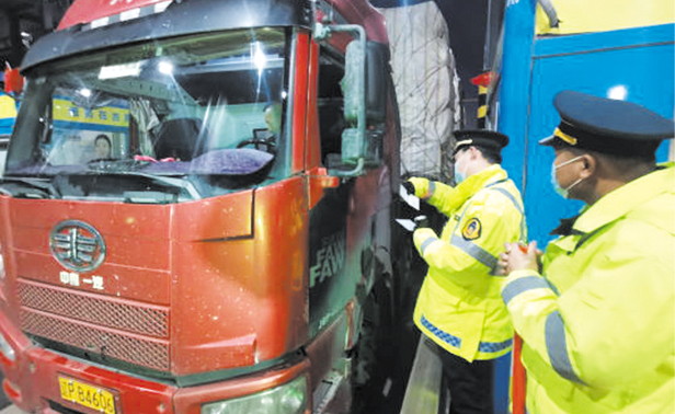 23:00,“司机师傅您好,我们是省交通运输综合行政执法局松原分局的执法人员,请您下车配合检查。”专项行动开始之前,松原分局的执法人员刘宁、焦海航已经按照计划来到治超点准备夜检夜查。为有效打击超限超载车辆“昼伏夜行”“钻路线空子”等现象,松原分局加大“定点值守+流动治超”执法力度,坚持“逢车必检、逢超必卸”,对违法超限超载运输车辆一律监督卸载、转运消除违法行为后再放行。同时,分析研判管辖路段违法超限超载车辆行驶规律,根据治超力量配置,在部分收费站和服务区开展流动治超行动,加大流动治超覆盖面。