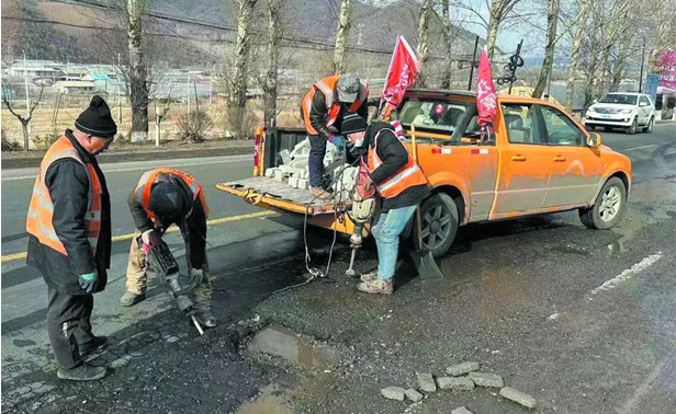 吉林市公路管养部门利用近期气温回暖的有利时机,迅速组织开展道路病害处置工作。养护人员对永吉县境内国省干线公路易积水路段及干线桥涵进行集中排查,对因春融水冲刷、下渗造成的道路坑槽、裂缝等水损害性病害进行应急修补,及时消除路面安全隐患,确保公众出行安全。