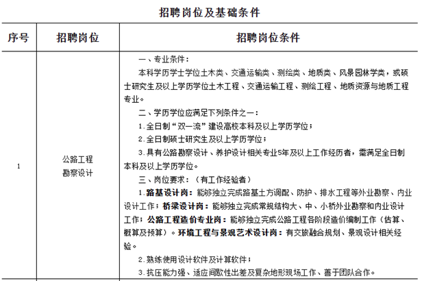 遵守宪法和法律,具备良好的职业道德和品行;具有岗位所需的文化程度、专业知识、业务能力及适应岗位要求的身体条件;年龄一般在40周岁以下(1985年10月31日以后出生)。具体岗位及所需要的学历、专业、工作经历等详见下表: