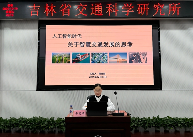 为主动适应人工智能时代发展新要求,进一步提升科研人员创新能力与专业视野,强化智慧交通发展的系统性、前瞻性与实践落地,1219日,吉林省交通科学研究所开展了第四期青年大讲堂活动。本期以人工智能时代关于智慧交通发展的思考为主题,特邀数字交通设计研发中心业务骨干果晓君担任主讲,围绕人工智能时代的行业变革、智慧交通发展演进历程与发展现状、十五五期智慧交通的战略方向与重点任务以及行业未来发展趋势等内容展开深度分享。本次活动旨在统一发展共识、凝聚转型动力,激发青年科研人员对智慧交通前沿方向的探索热情,为推动我省交通运输高质量发展、培育面向未来的行业新质生产力注入思想动能与创新活力。