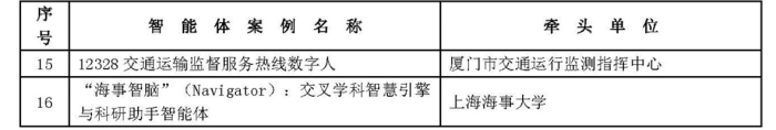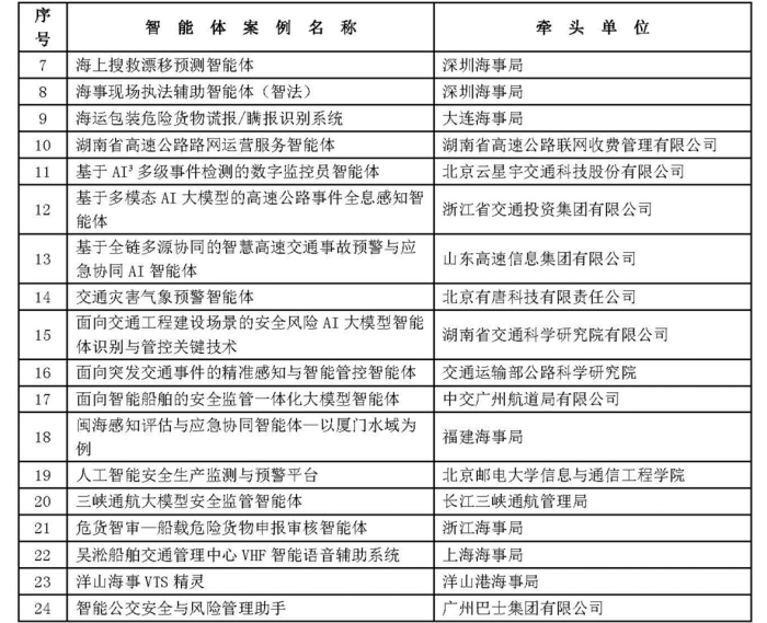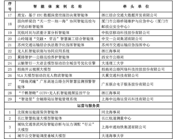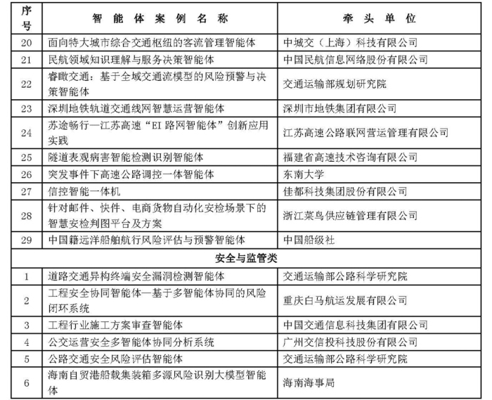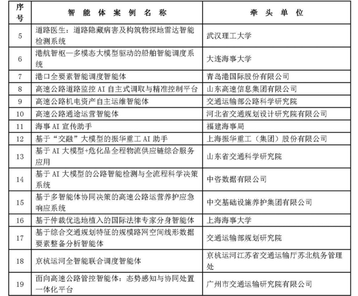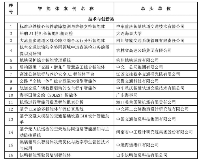 综合交通运输大模型智能体创新应用典型案例名单(第一批)