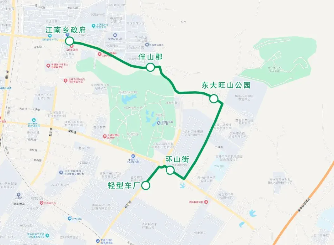 轻型车厂始发,途经环山街、深东路、凤山路、苍山路、恒山东路,终到江南乡政府。