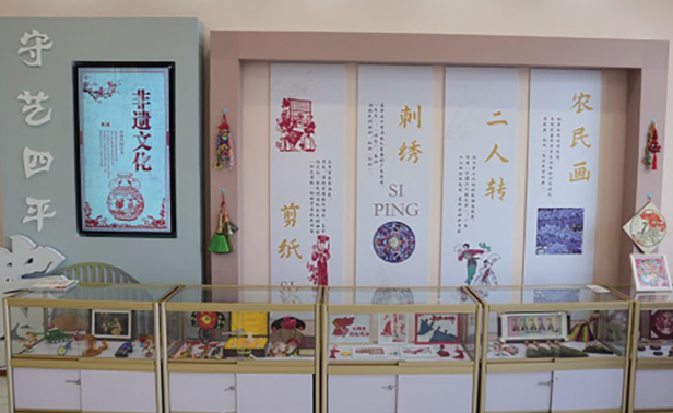 四平服务区在原有满族打卡布景的基础上,深耕四平属域红色文化资源及其他非遗文化资源,在展厅内悬挂了复古灯饰,张贴了农民画、二人转、剪纸等图文介绍,摆放各类非遗手工艺品、红色纪念产品,设置了武器模型、滚动灯箱和主题文化展示墙,全景展示四战四平全过程,着力打造“红色+满族”双主题特色服务区。同时,室外也增加了吉林元素剪影、“满族八大怪”铁艺造型、海东青及其他人物打卡造型。“这个‘四战四平’场景真不错,我能从中了解历史,珍惜现在来之不易的幸福生活。”旅客赵女士边拍照边说。