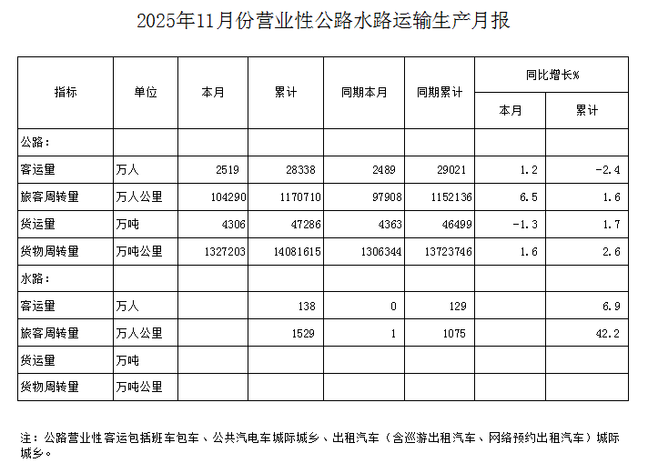 2025年11月份营业性公路水路运输生产月报.xlsx