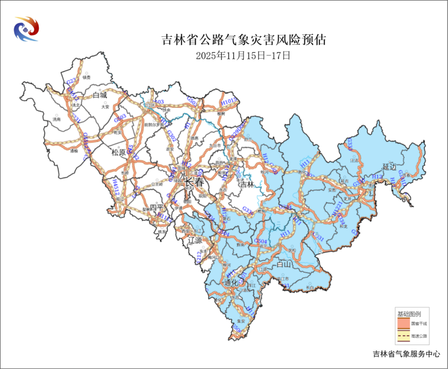 雨雪天气期间路面湿滑、能见度降低,尤其是中东部地区雨雪量较大,雨雪过后气温迅速下降,路面易积雪结冰和路面湿滑,特别是珲乌东段,鹤大延边、白山段。