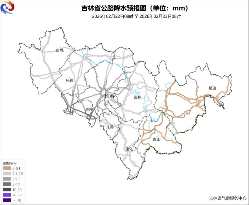 2月22日(初六):全省多云有时阴,松原、长春、四平、辽源、吉林、通化有雨夹雪转中雪,部分地方有大到暴雪,其他地区有雨夹雪或小雪。最高气温:东部-2~3℃,其他地区-9~-5℃;最低气温:东部-5~-2℃,其他地区-19~-15℃。中西部有4级左右西北风,瞬间风力可达6级