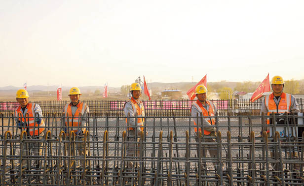 5:30,东双项目辽宁段05标的钢筋工人们开始绑扎汽车天桥的桥面钢筋。自项目进入献礼建党百年——大干100天劳动竞赛的阶段,他们便秉承着新时代的工匠精神,肩负着“工人先锋号”的使命,为打通集双高速公路省际断点,高质量建成两省共建路努力拼搏。(张书建)