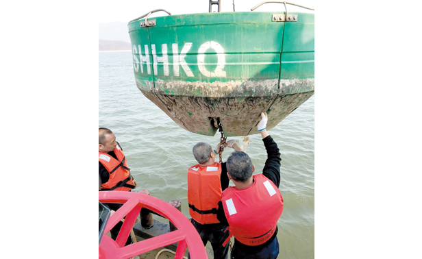 8:00,省航道局的工作人员来到松花湖库区开始布设航标,为旅游、渔政等船舶指引航向。(姜涛)