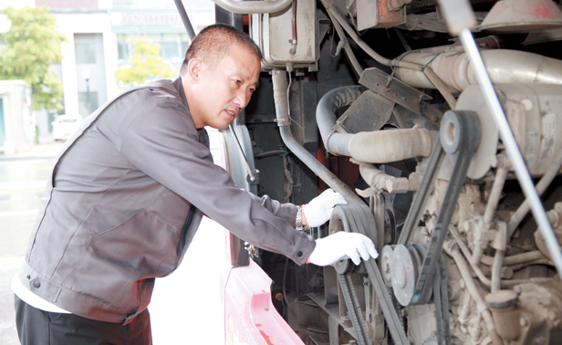 5:30,通化市公共汽车公司的公交司机们已经在做发车前的准备工作了,他们对车辆进行安全例检,对车厢做好消毒、通风和卫生清理工作,为乘客提供“安全、舒适、方便、快捷”的出行环境。(李双燕)