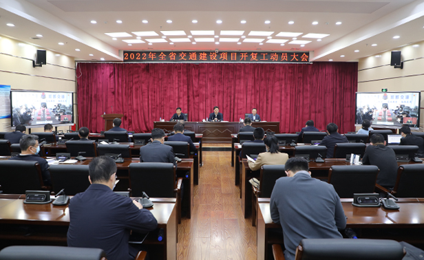 2月23日,全省交通建设项目开复工动员大会在长春召开,主要任务是按照省委、省政府要求部署,落实全省优化营商环境加快项目建设大会精神,动员各地迅速掀起交通项目建设高潮,持续扩大有效投资,实现全年交通项目建设良好开局。副省长蔡东出席大会并讲话。省交通运输厅党组书记、厅长李平通报全省交通建设项目开复工情况,安排下步工作。大会由省政府副秘书长张凯明主持。