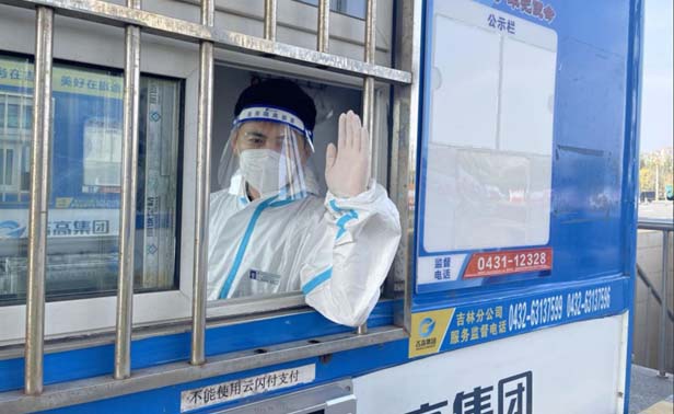 6:30,天色渐亮,吉林南收费站岗亭内收费一班从零点接班已值守一夜,收费员们在寒风中略有疲惫,但面对往来的车辆,依然保持着身姿挺拔、声音洪亮,亲切的问候、标准的手势、热情的微笑,温暖着每位早起的赶路人。